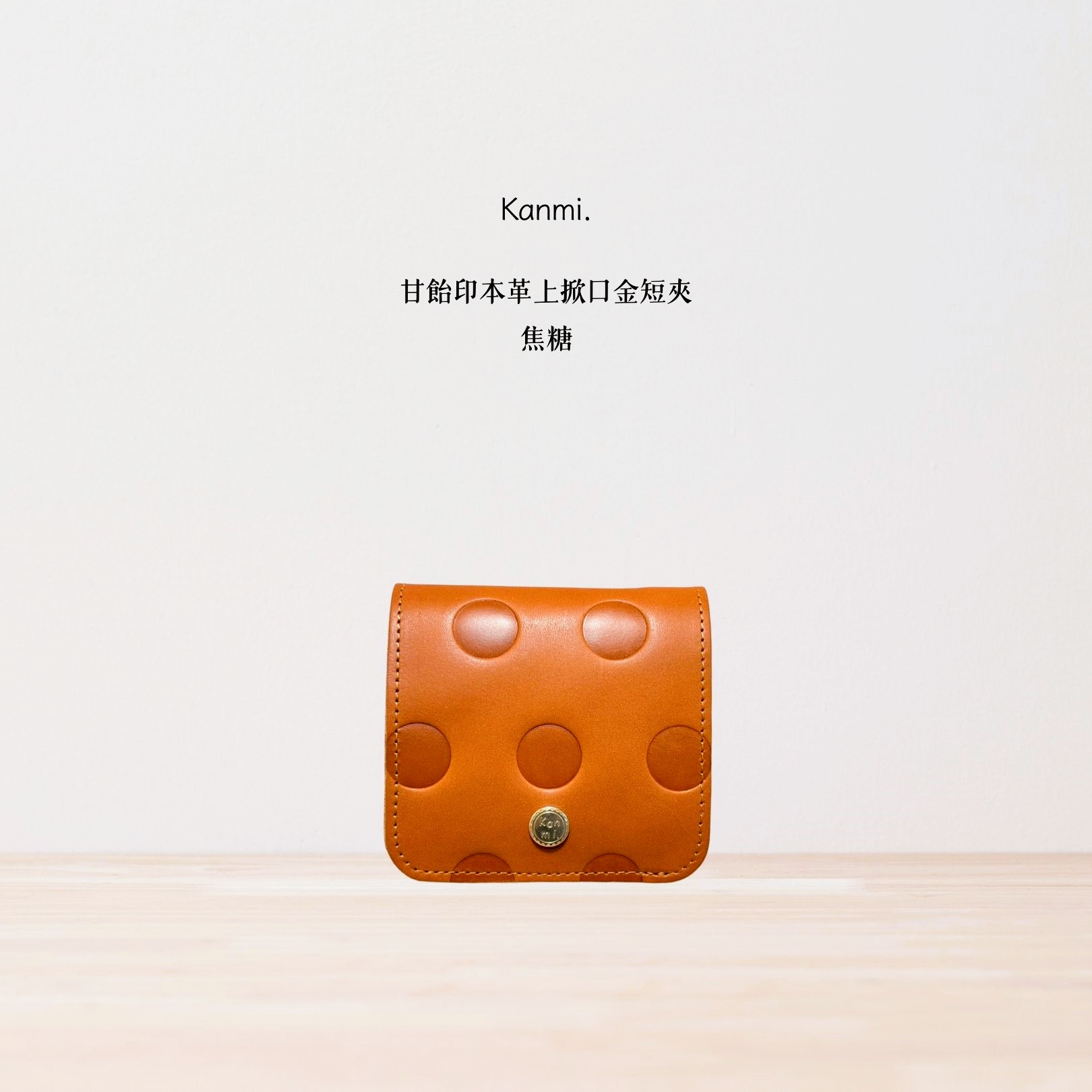 Kanmi. 淺草革小物.甘飴印本革上掀口金短夾 焦糖|東京職人手作|天然牛革|復古質感口金|初日短夾首選