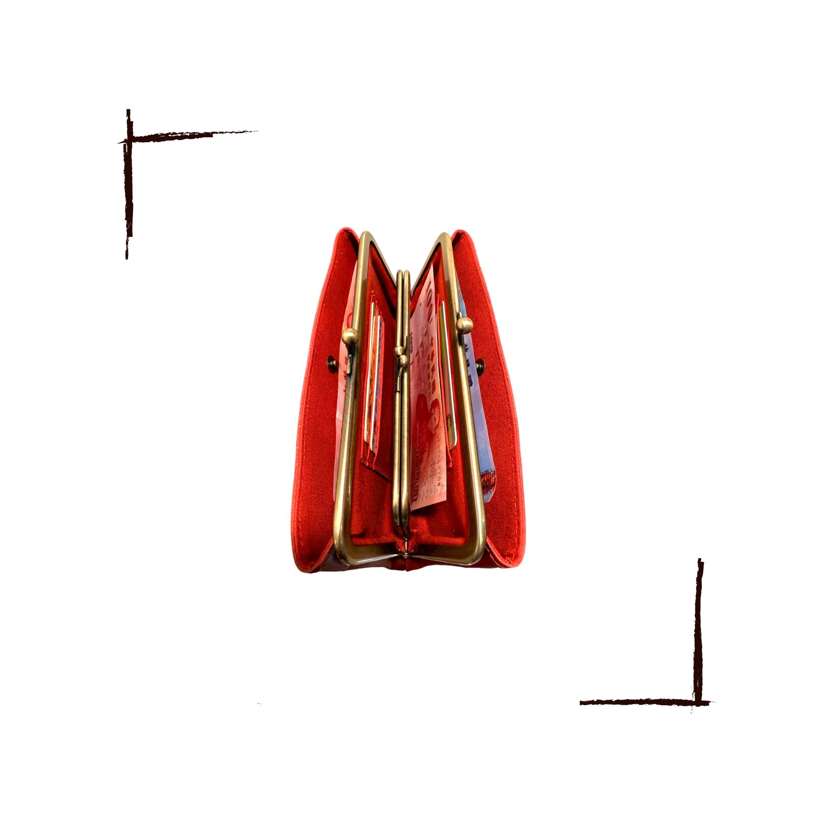 Kanmi. 淺草革小物.甘飴印本革對開口金長夾 紅醋栗|東京職人手作|天然牛革|雙口金設計|整理控必備