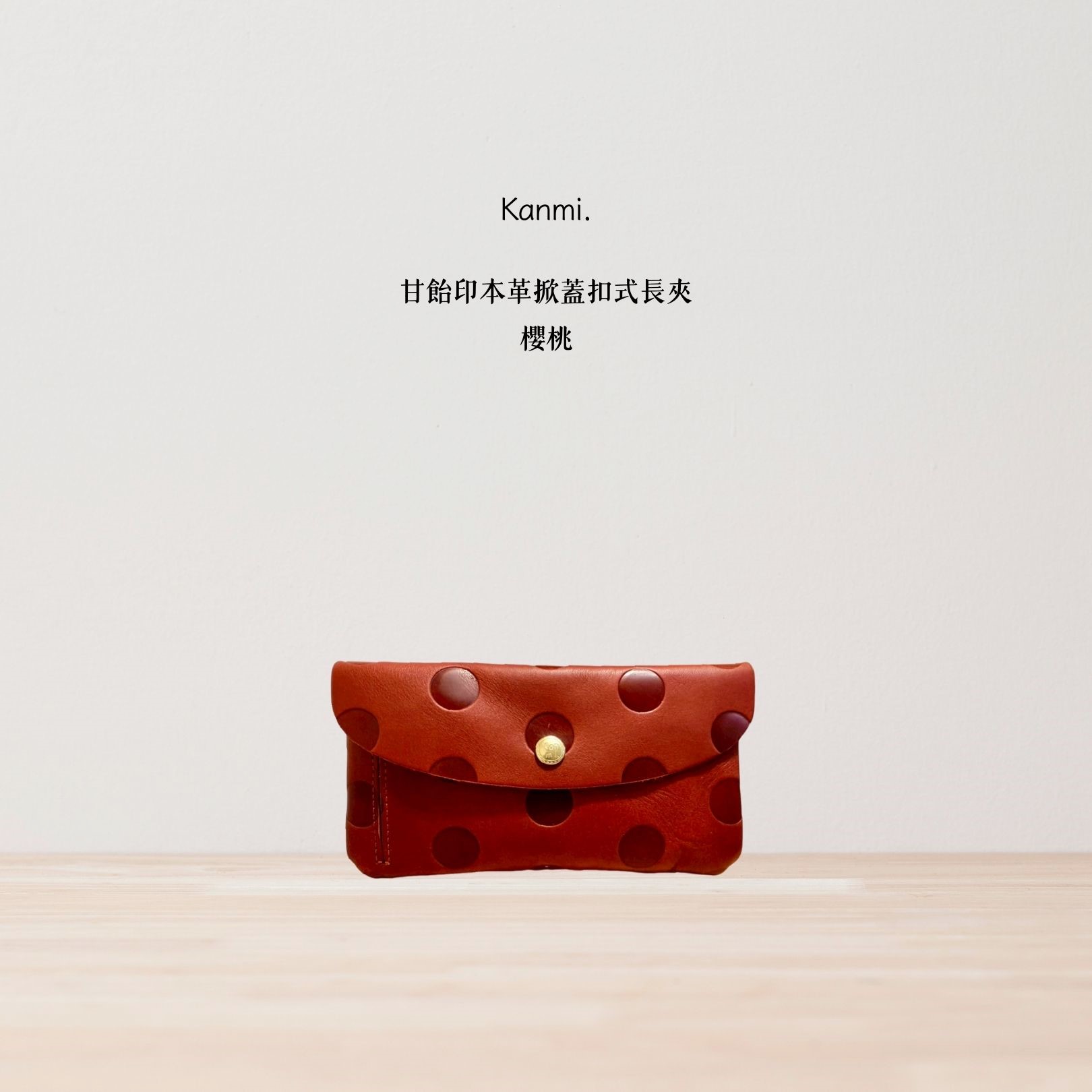 Kanmi. 淺草革小物.甘飴印本革掀蓋扣式長夾 櫻桃|東京職人手作|天然牛革|輕薄,但容量超反差