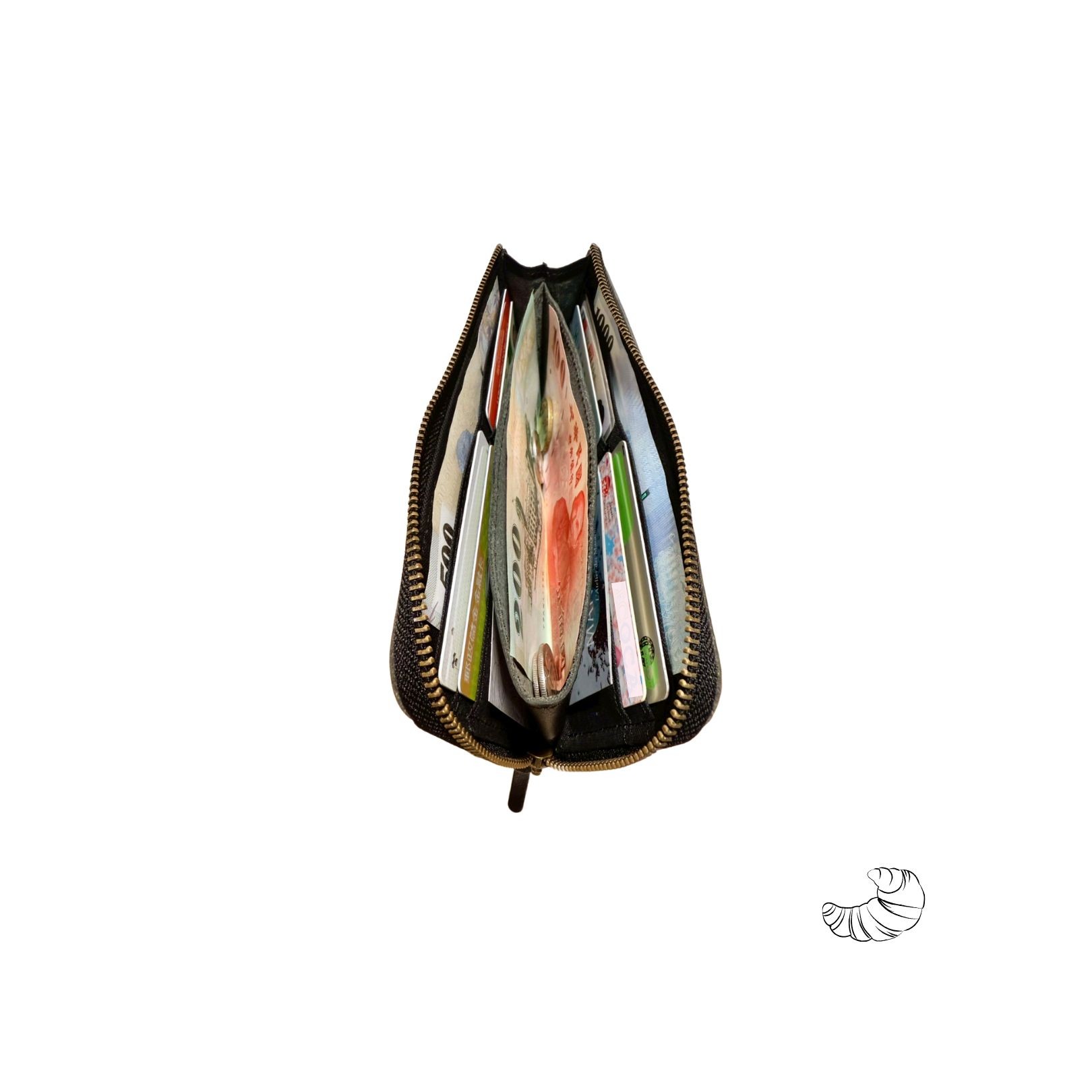 - 精巧中層零錢袋,拉鍊闔上零錢不散